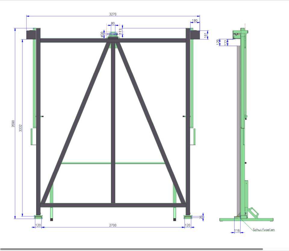 Dimensions: Heigth 1900/3590x600xWide 3270 mm