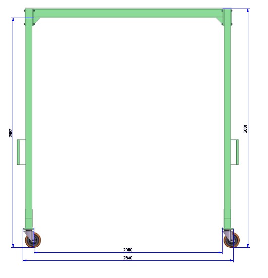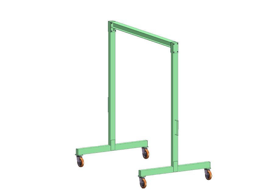 This gentry crane is available in various sizes, can be disassembled and available with manual winch or electric winch. Ideal for lifting a panel of a A frame on site, on to trolley. You can work alone so it saves money. You can also use it in you working place to put windows from the cutting table on to the rack or truck.
