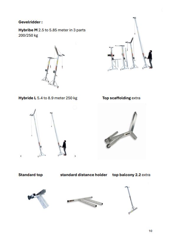 This is a extenable alu. lift in 3 parts, 2.4 to 3.7 mtr and with a separet part to 5.8 mtr high, the lifter has also a distance holder and pull up installation. We advice you to use this machine with the VA451 vacuummachine with hand pads or the VA600 battery operated lifter.