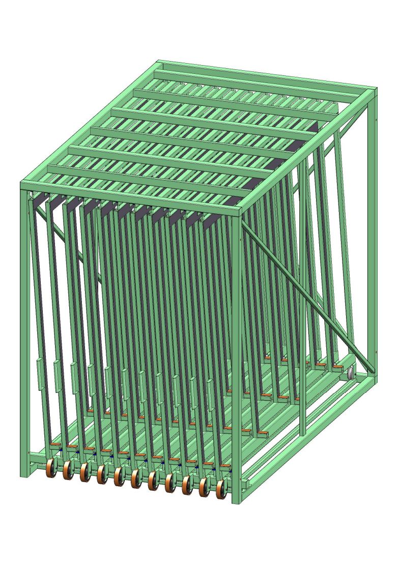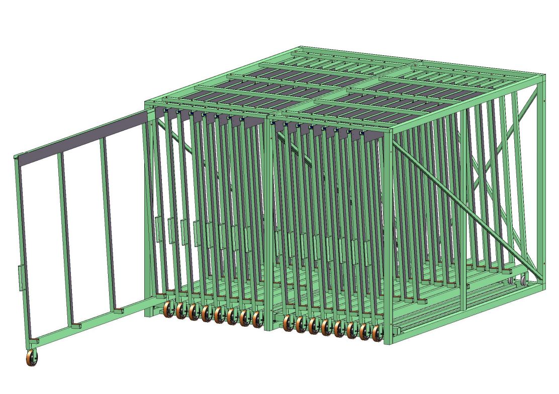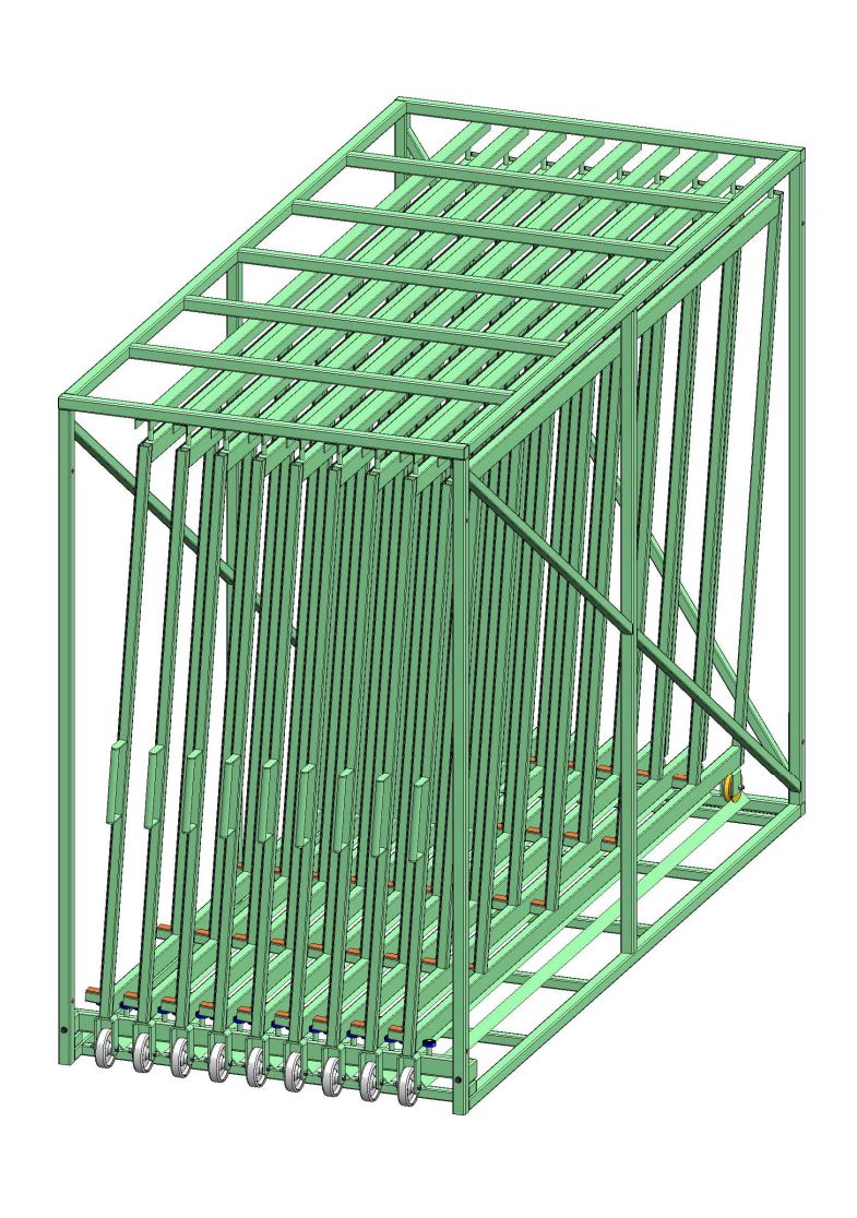 Een schuifstellling voor de glasmaat 170×260, 225×321 of 255×321 cm. Met een grotere opzet waardoor U 1750 kg per schuif kunt plaatsen. Het aantal schuiven is variabel tot aan breedte wat te vervoeren is met een vrachtauto.