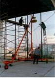 This car is mobile on 3 big air tires, with 100 kg countra weight, length about 3 m, height about 2.8 meters. The car can easily be disassembled, complete with winch. Only suitable for use on the ground floor, perfect to use for the handling of shop windows, always use the correct vacuum machine.