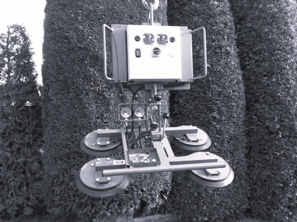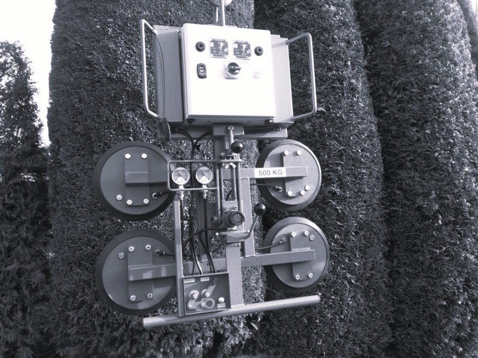 The Twin500 battery-powered vacuum lifter (500 kg capacity) is designed for customers who appreciate the user-friendly features of our V500 and SP models, but require a dual vacuum system. It is equipped with four suction pads, distributed evenly across the load and connected crosswise across two independent systems. When you like model but do not need the dual system, we provide this machine with the very popular quick change system, availabel high or low or with RC.