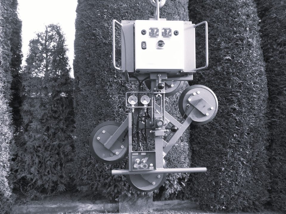 - Application A fall protection is recommended but not required.Dual system 2 pumps, 2 batteries, 2 reservoirsSpecial edges for glass, sandwichpanels, concrete, nature stone possibleTilt horizontal verticalTurn 360 degrees
